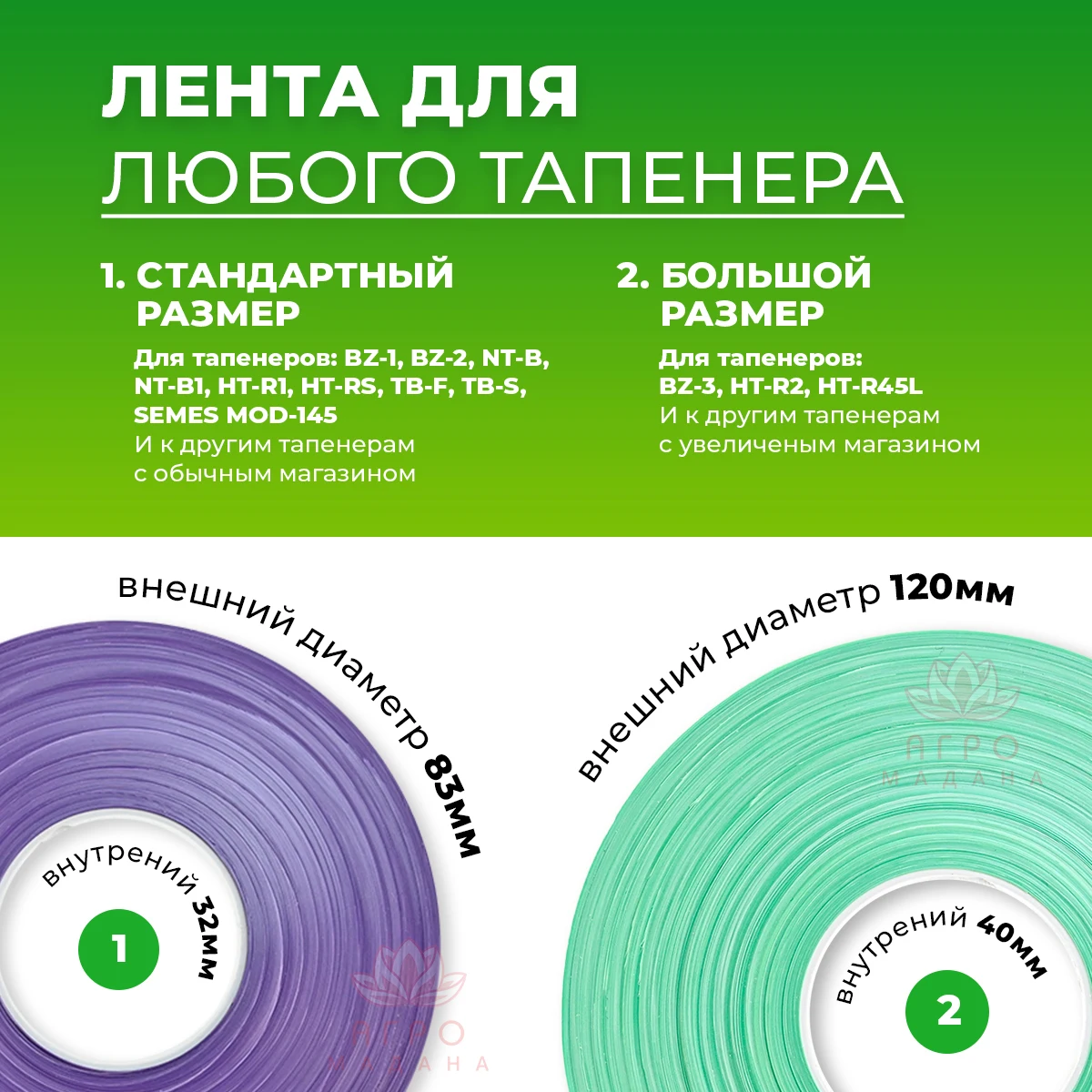Будьте внимательны при выборе ленты, так как тапенеры имеют разный диаметр барабана. При необходимости Вы можете проконсультироваться с менеджером (написать нам в сообщения) при оформлении заказа, он поможет Вам подобрать ленту, которая подойдет для степлера, а также для необходимого вида растения. Действуют оптовые цены на количество!