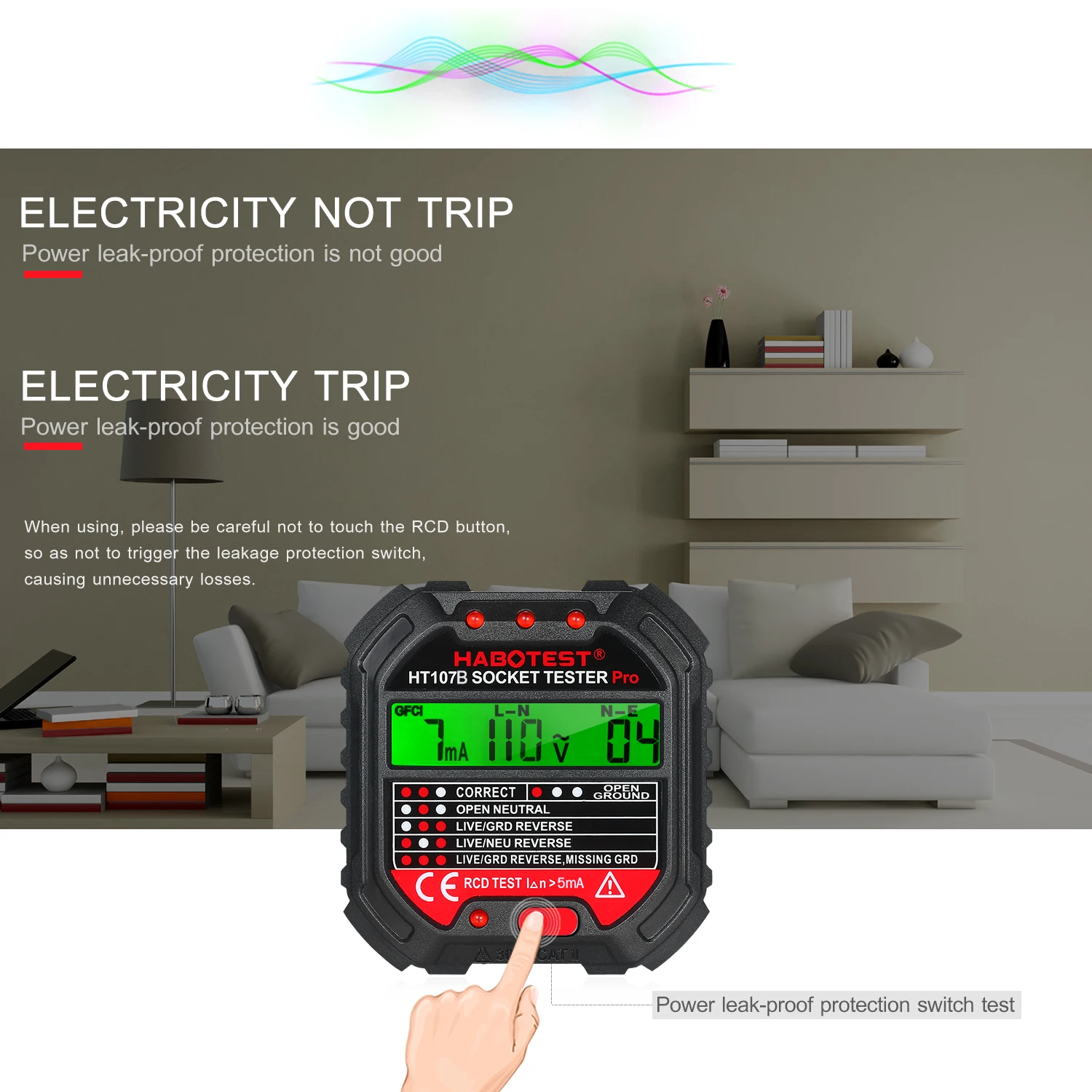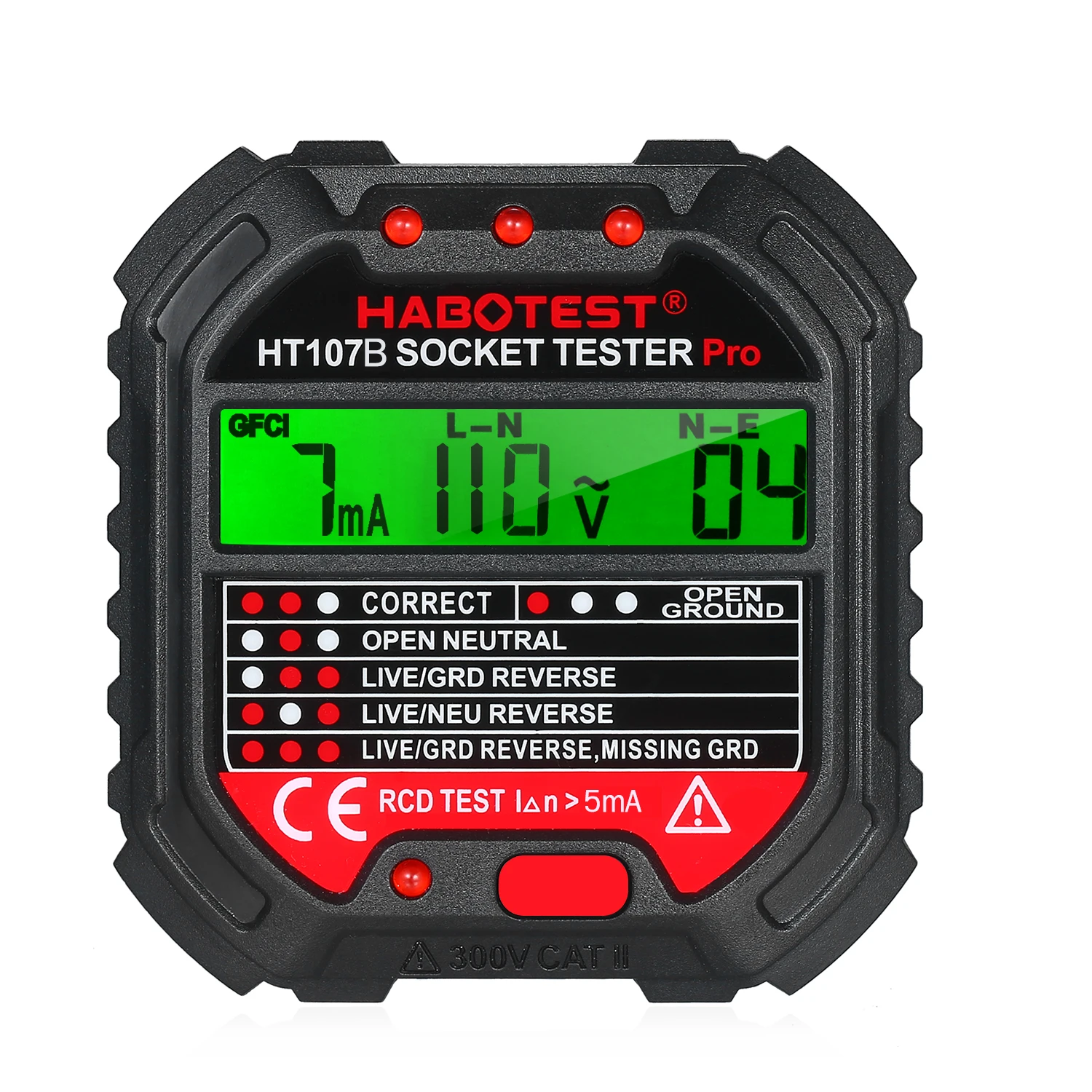 Расширенный HABO тест на гнездо может помочь вам проверить проводку дома и полярность подключения гнезда, он также может использоваться для тестирования утечки отключения. Это профессиональный тестер гнезд, который быстро определяет, является ли соединение провода гнезда правильным или нет. С функцией тестирования RCD/GFCI, это более практично и безопасно.