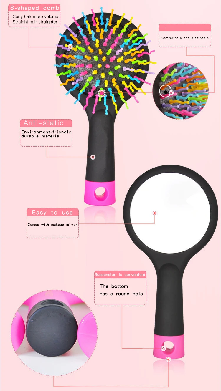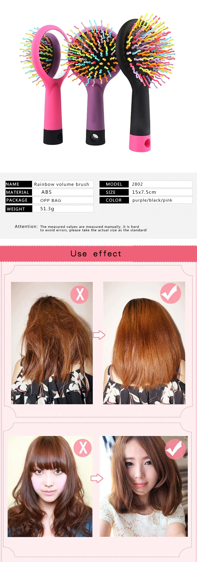 Beauty Rainbow щетка для объема с зеркалом Антистатическая Массажная расческа для волос Кудри и парик для укладки щетка для волос аксессуары для парикмахера новинка, 2802