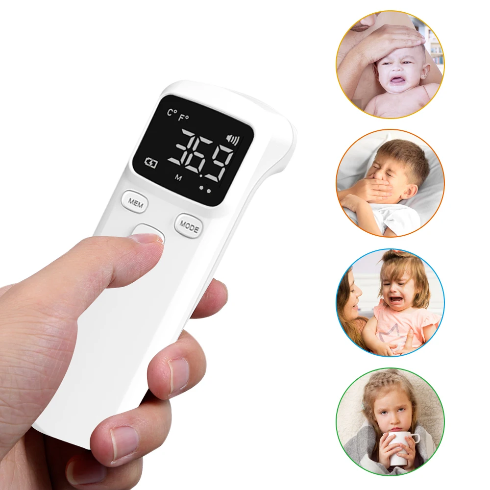 Бесконтактный термометр: Бесконтактный инфракрасный термометр может измерять температуру в пределах 2-4 дюймов от лба, более безопасный и безопасный.