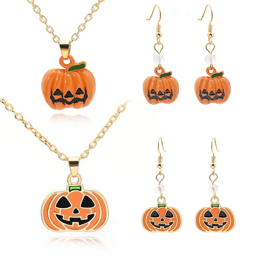 Модное ожерелье с тыквой для Хэллоуина, серьги для женщин и девочек, цветные подвески в стиле панк, подарок на Хэллоуин