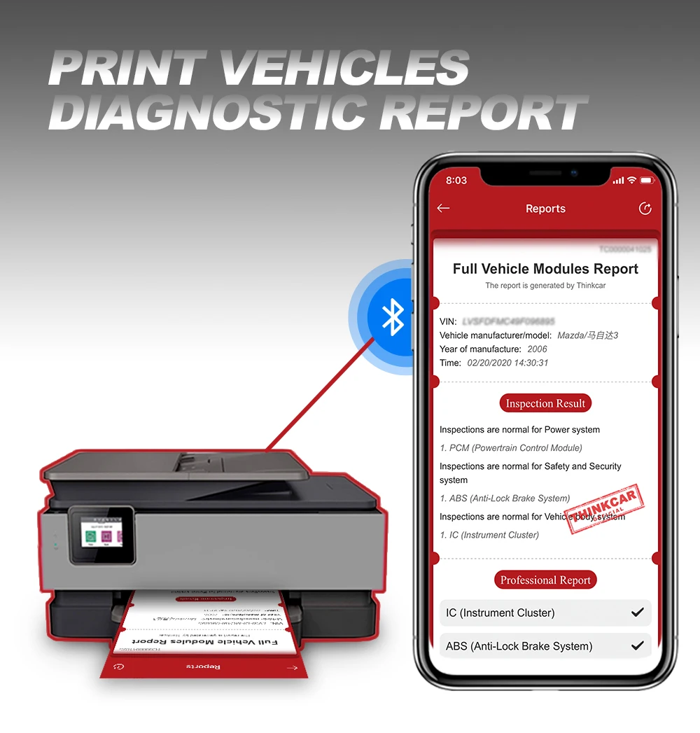 Thinkdiag поддерживает диагностический отчет OBD транспортных средств и распечатывает отчет о транспортных средствах от ПК, это поможет вам понять проблему автомобиля. И сообщить вам, как отремонтировать автомобиль.