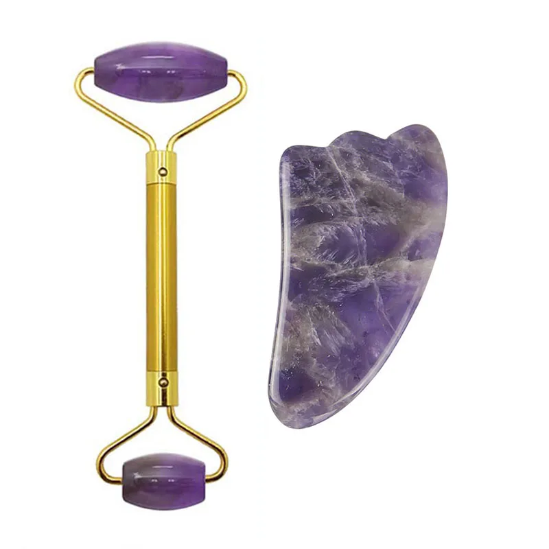 Аметист нефритовый ролик для массажа лица гуашь скребок гуаша Массаж Набор инструментов натуральный гуашь нефритовый массажер для тела подарок