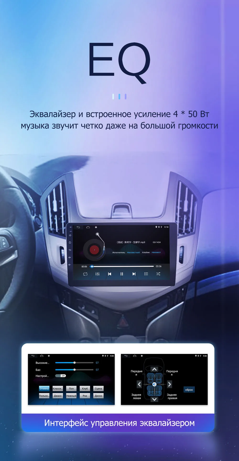 . ОС: чистая Операционная система Android RAM + ROM:1G + 16G 2G + 16G 2G + 32G Поскольку система занимает внутреннюю память, операционная система занимает около 4-6 ГБ памяти. Бесплатная карта установки Процессор: четырехъядерный Поддержка изменения логотипа, пароля заводского набора: 8888, изменение логотипа Разъем питания: подключи и работай Встроенный GPS -Поддержка 2D HD и 3D карт Разрешение: емкостный экран 1024*600 пикселей --- Интернет-развлечения, встроенный модуль WiFi. --- Поддержка видеоигр HD 1080p, поддержка зеркального соединения и Airplay. --- Радио: FM-радио Функция двойной зоны (пользователь может слушать музыку или радио в режиме GPS-навигации) --- Встроенная Bluetooth-гарнитура и телефонная книга, поддержка A2DP, воспроизведение музыки напрямую по телефону. (Необходимо согласиться на авторизацию телефона и синхронизировать контактную информацию в настройках телефона) Совместимость с управлением на руле Электронная и механическая Противоударная система --- Высокомощный стерео аудиовыход, поддерживает 4 динамика ---- Поддержка камеры заднего вида inpu