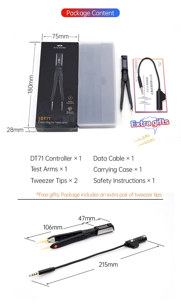 DT71 oled-дисплей портативные многофункциональные цифровые умные пинцеты генератор сигналов отладка инструмент для тестирования сопротивления, емкости и индуктивности частоты напряжения