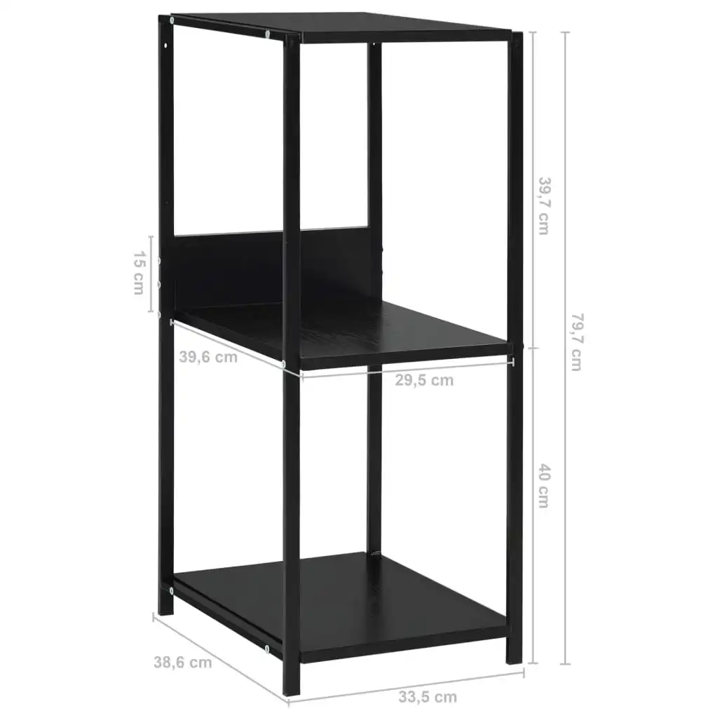 Цвет: черный Материал: ДСП, сталь Габаритные размеры: 33,5x39,6x79,7 см (Д x Ш x В) Размеры деревянной доски сверху и снизу: 29,5x39,6x1,5 см (Д x Ш x В) Размеры средней полки: 29,5x39,6x15 см (Д x Ш x В) Черные Размеры: 38,6x79,7 см (Ш x В) Количество полок: 3 Требуется сборка: Да