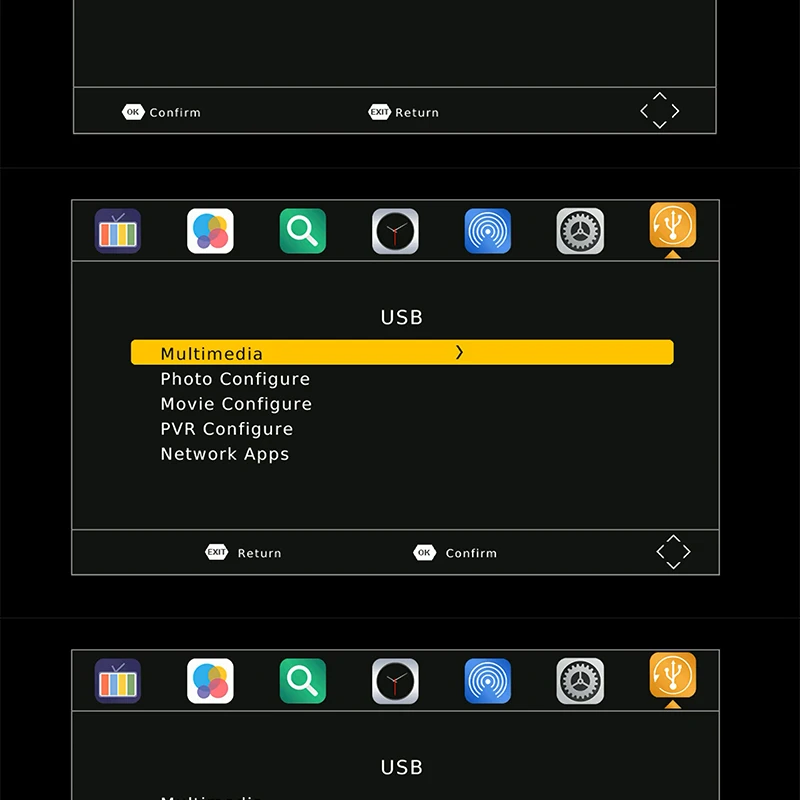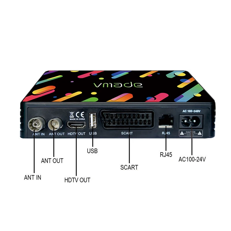 "• DVB-T2, получить HD цифровой наземный телевизионный канал • H.265/HEVC видео декодер • Пресс-форма-10-bit Цвет глубина • адаптер USB Wi-Fi MT7601 • MeeCast • Порт Ethernet 100 Мбит/с • программное обеспечение для онлайн-обновления (FTP) • YouTube, IPTV(M3U) " Передняя и задняя панель тюнер RF входной разъем IEC-162-2 (мама) Тюнер RF петля через разъем IEC-162-2 (папа) Один выход HDTV Один хост USB 2,0 на задней панели Один выход Scart (женский) Один 1x1 0/100 Мбит/с Ethernet порт Один вход питания (AC100 ~ 240V 50Hz/60Hz) Один светодиодный индикатор (4-разрядный)