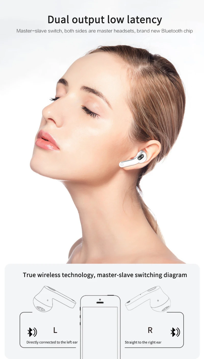 5. Автоматически запускайте соединение, выньте два уха, чтобы автоматически начать согласование, Включите мобильный телефон Bluetooth для автоматического подключения, автоматически выключайте питание, когда оно вынимается из коробки и автоматически подходит, и автоматически заряжайте зарядную коробку при возврате