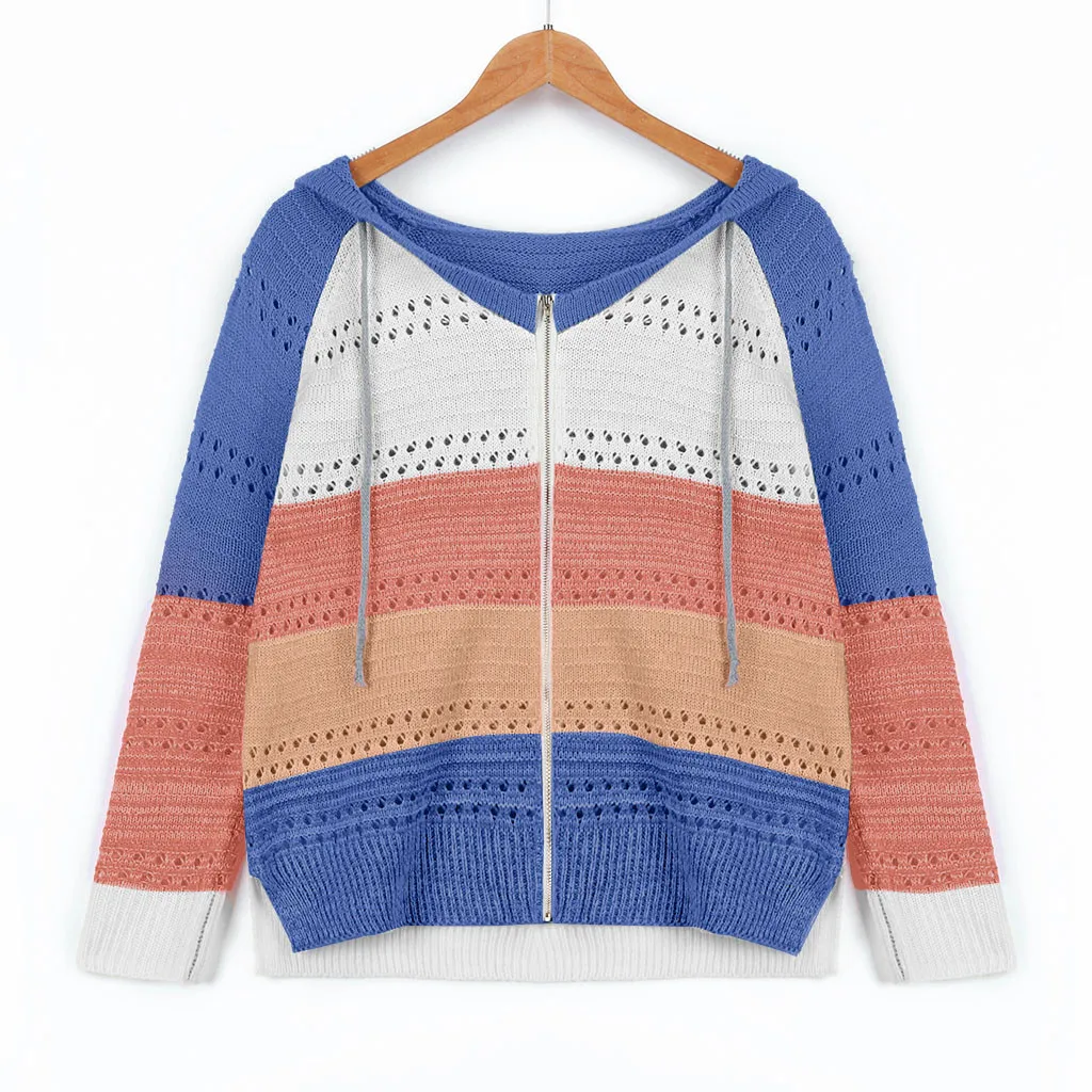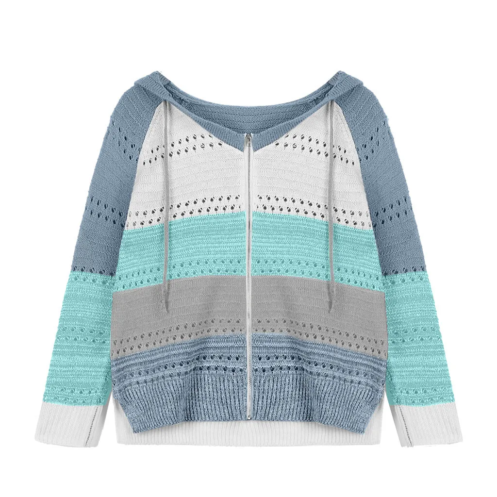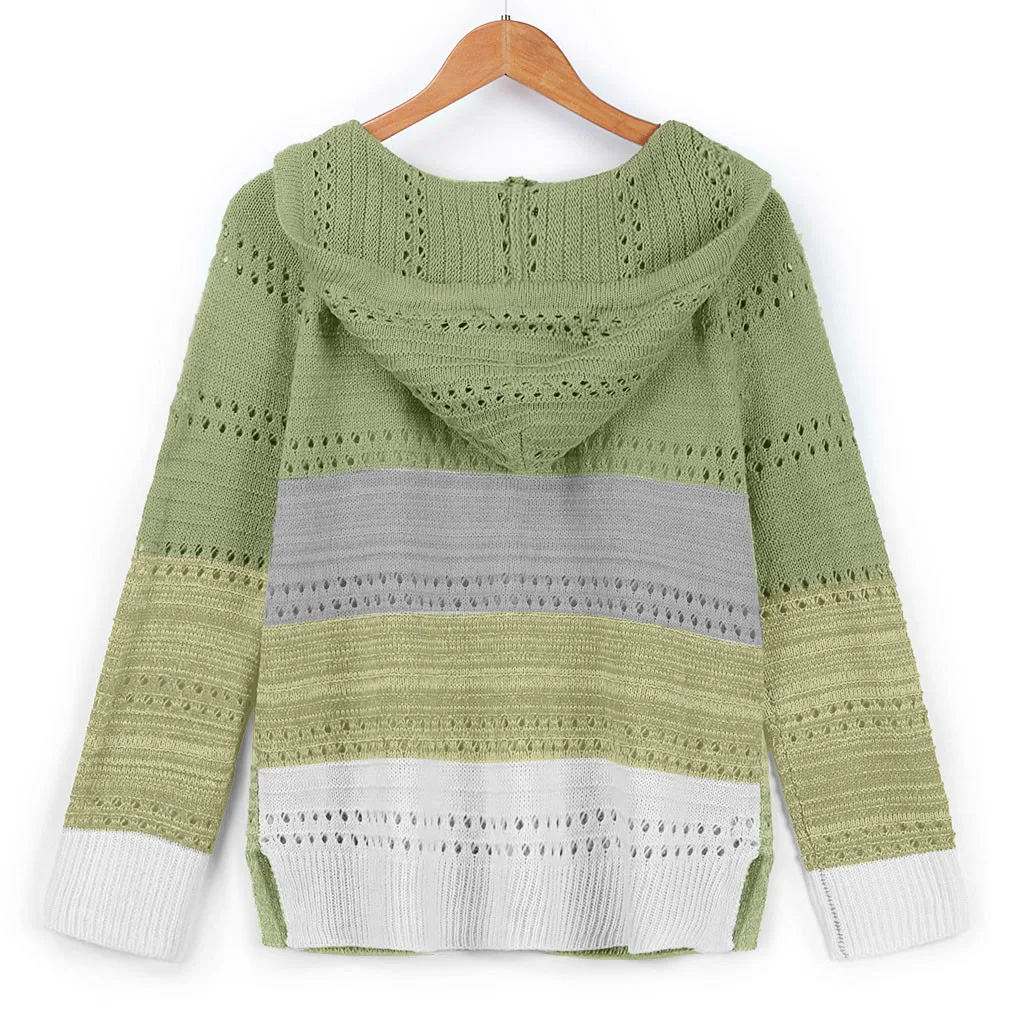 Модный женский Повседневный лоскутный свитер с длинными рукавами и капюшоном, кардиган, блузка, топы