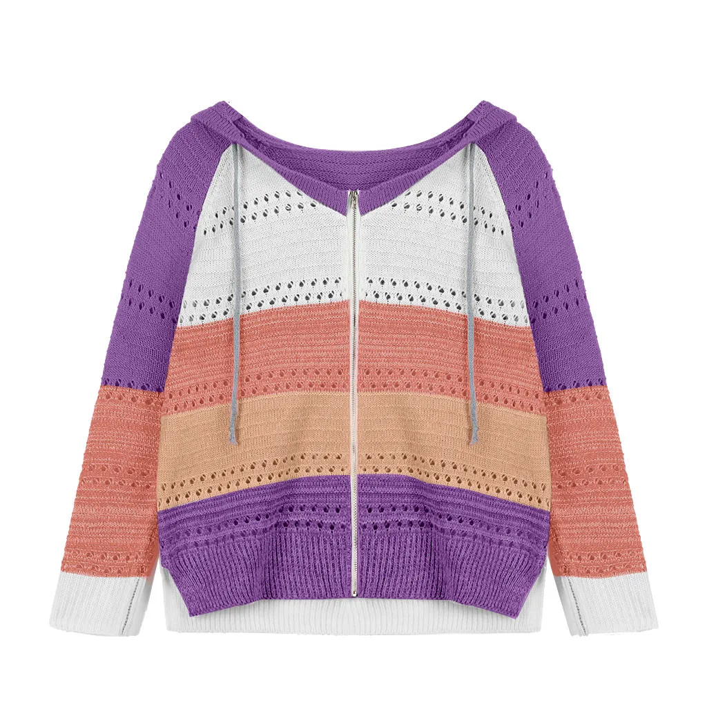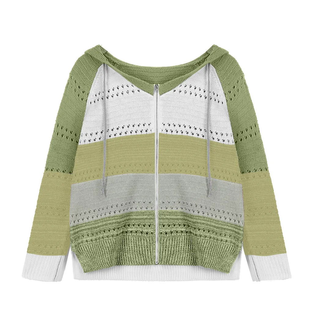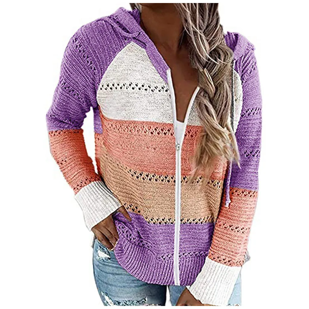 Модный женский Повседневный лоскутный свитер с длинными рукавами и капюшоном, кардиган, блузка, топы