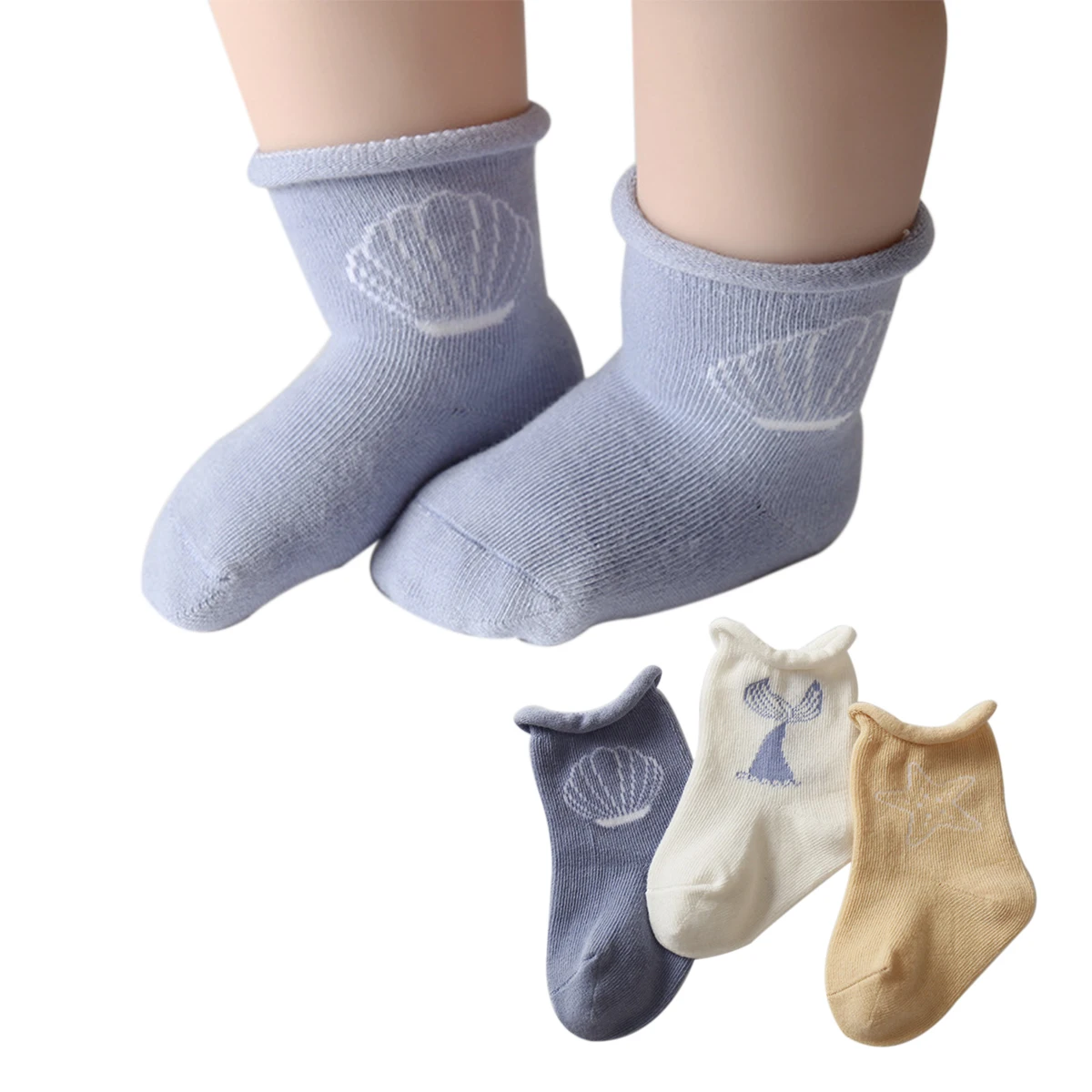 Children's Terry Socks, Baby Unisex Cotton Solid Color Thin Sock, Non-Skid Soles