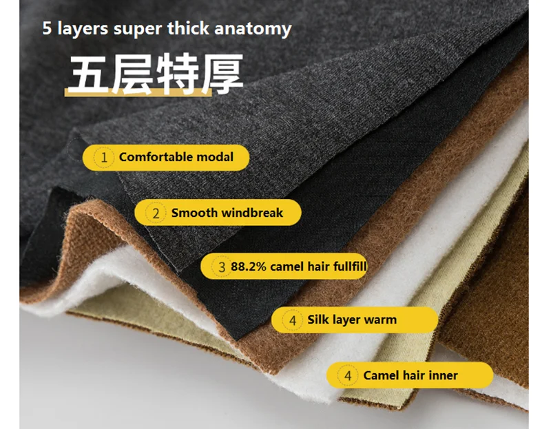 Середина: 88.2% из верблюжьей шерсти, акриловая 5.2%, 6.2% из спандекса