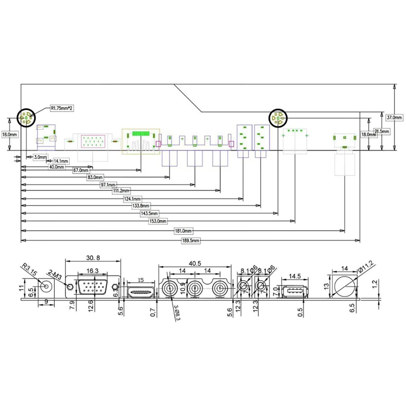 Размер платы контроллера: 190 мм x 43 мм x 18 мм