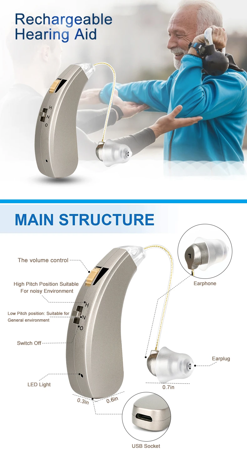 AAB52SP не программируемый перезаряжаемый слуховой аппарат BTE. На основе интегрированной обработки сигналов, AAB52SP оснащен двумя предварительно установленными переключателями. Слуховой аппарат содержит встроенный литий-ионный аккумулятор. Используйте поставляемый Кабель micro-USB для зарядки слухового аппарата.