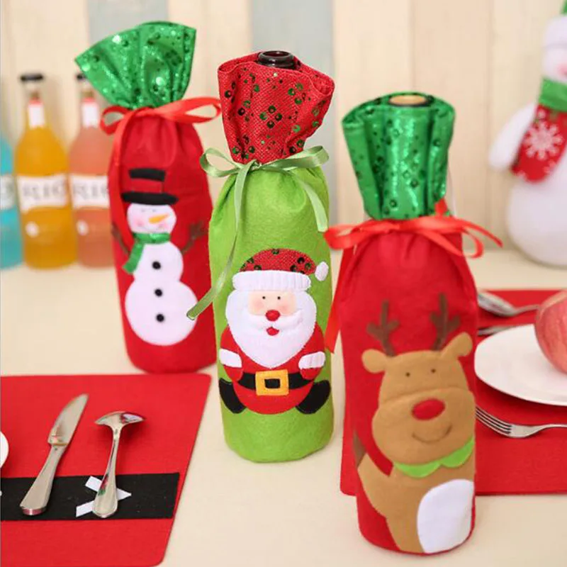 Рождественские красные чехлы для винных бутылок 2020, блестящий чехол для бутылки шампанского Санта-Клауса, рождественские украшения для дома