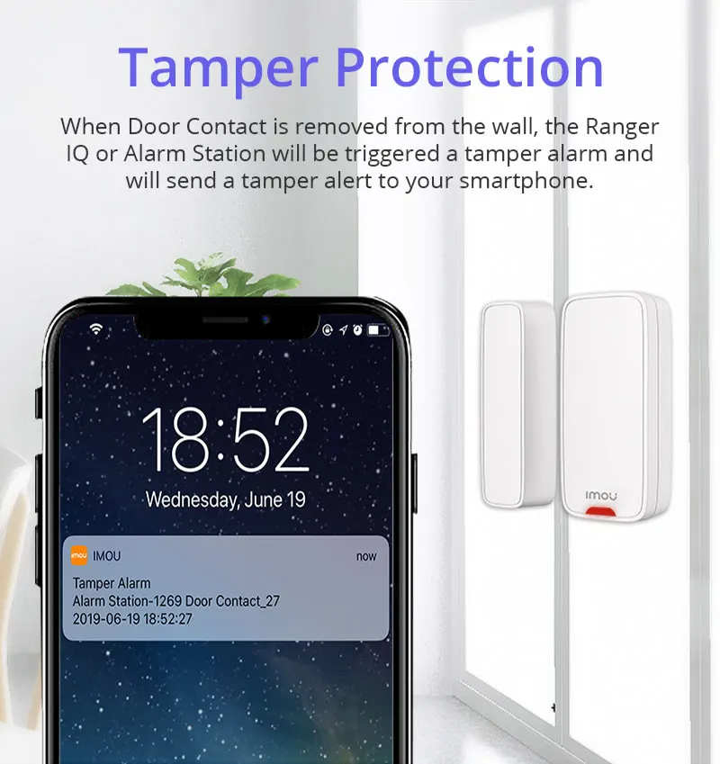 Когда дверной контакт будет удален из стены, Ranger IQ или Сигнальная станция будет срабатывать аварийный сигнал и отправит оповещение о вскрытии на ваш смартфон.