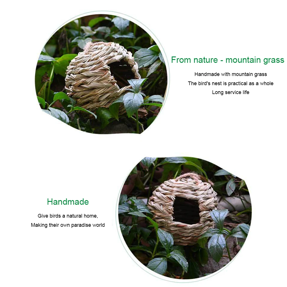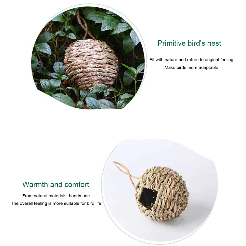 Висячая натуральная солома круглой формы Птичье гнездо ремесло открытый двор ручной работы разведение трава клетка для птиц пещера Птичье укрытие аксессуары