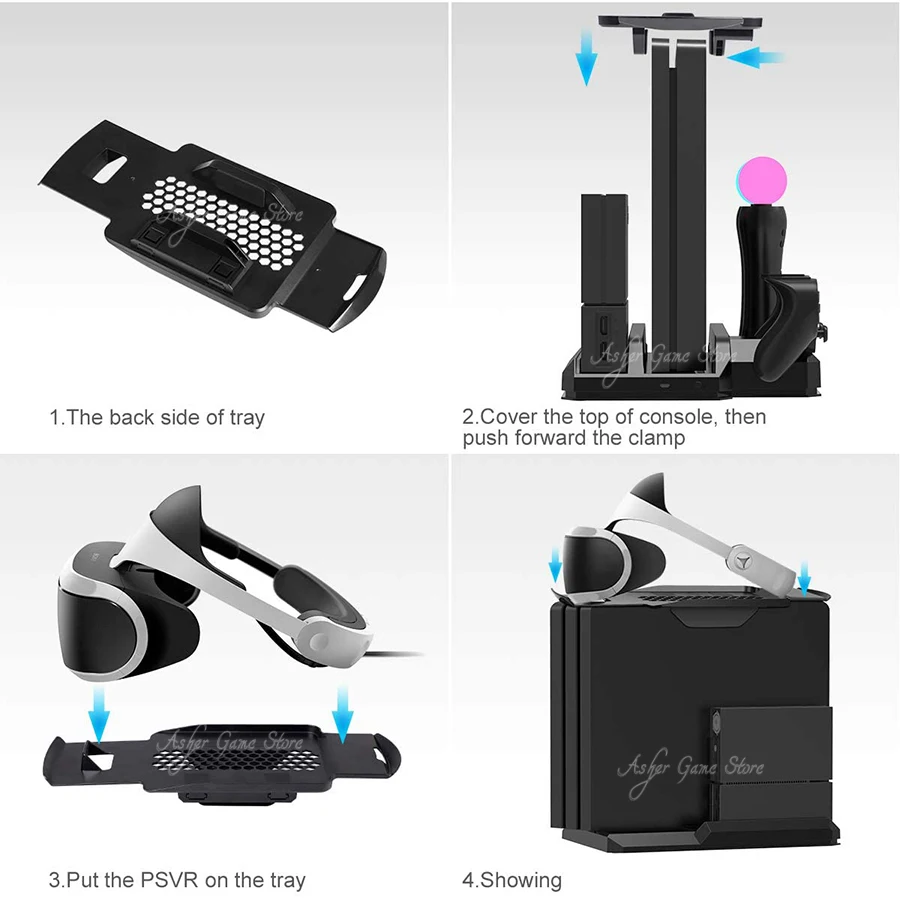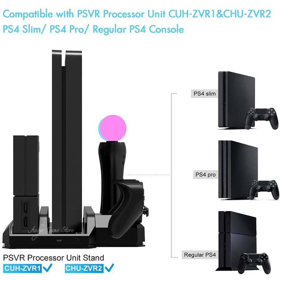 Совместимость с: подходит для более старых и новых контроллеров движения + блок процессора PS (CUH-ZVR1 и CUH-ZVR2 ) + дисплей PS VR + PS4 SLIM / PRO/Обычная консоль PS4Все-в-одном стенд: компактный дизайн держит ваш процессор VR и игровую консоль в вертикальном положении, дисплей VR в горизонтальном положении, что позволяет организовать ваше игровое пространство.