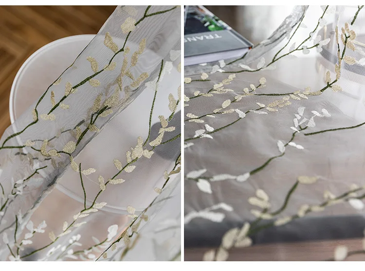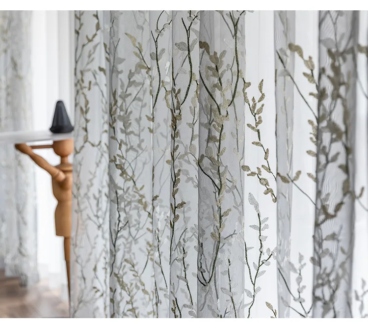 Плетеная занавеска из тюли с вышивкой в китайском стиле для спальни, гостиной, Современная серая прозрачная оконная панель из вуали
