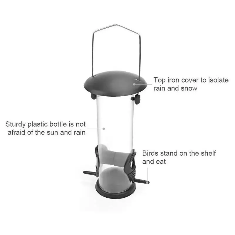 Металлическая крышка для головки и жесткий пластиковый корпус для бутылки, вам не придется беспокоиться о разрыве, даже если кормушка для птиц падает с дерева.