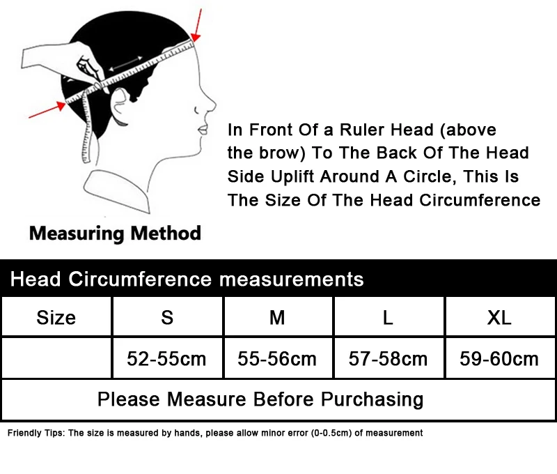 Примечание: Пожалуйста, измерьте окружность головы перед покупкой и свяжитесь с нами
