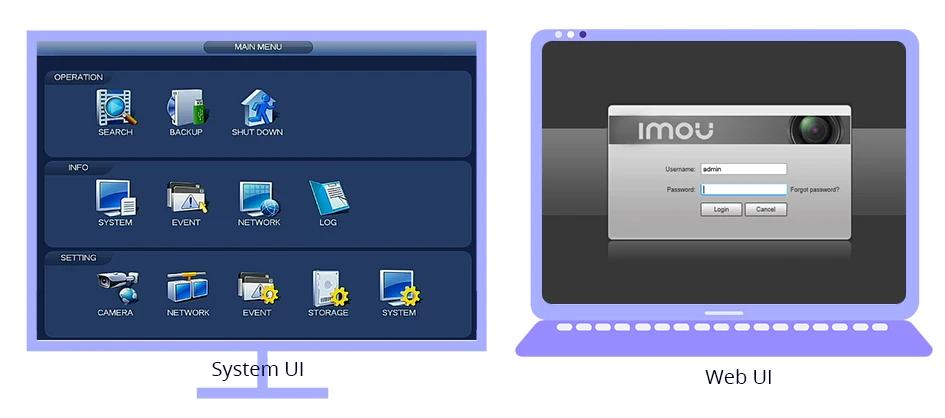 Дисплей операции: веб/GUI/Imou Life App
