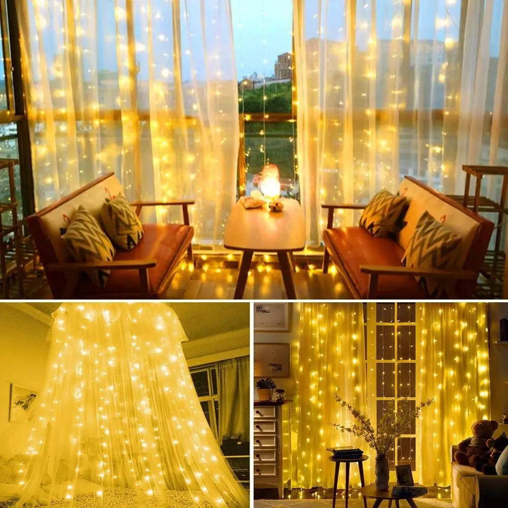 3 м светодиодная гирлянда для занавесок, Рождественская гирлянда, светодиодная гирлянда для свадебной вечеринки, освещение для внутреннего, наружного, домашнего занавеса, декор для окна с пультом дистанционного управления