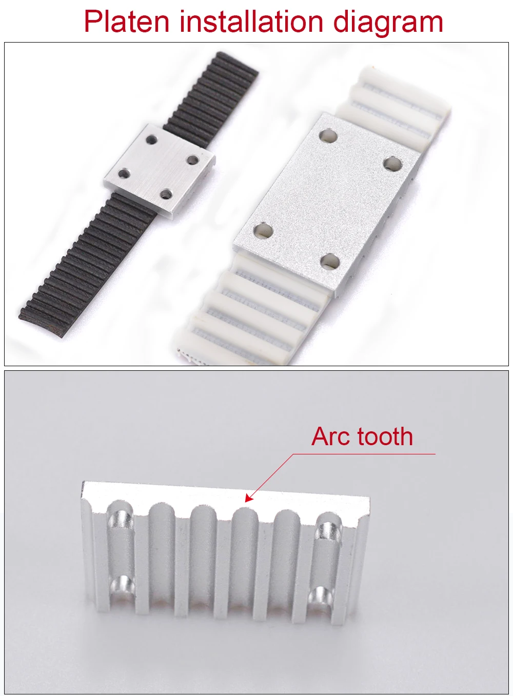 2GT/S2M/3M/5M/8M зажим/зубная пластина Особенности: Зубная пластина подходит для соединения на обоих концах отверстий синхронного ремня, и с машиной, фиксированной для достижения передачи, синхронного ремня и зубной пластины после окклюзии, С винтами через крепежные отверстия зубной пластины и необходимости основания замка 2GT/S2M/3M/5M/8M зажим/зуб пластины чертеж и характеристики:Советы: Наша зубная пластина-это зубная пластина типа TBCR, которая должна быть закреплена фиксированным основанием. Его нельзя использовать без фиксированного основания!
