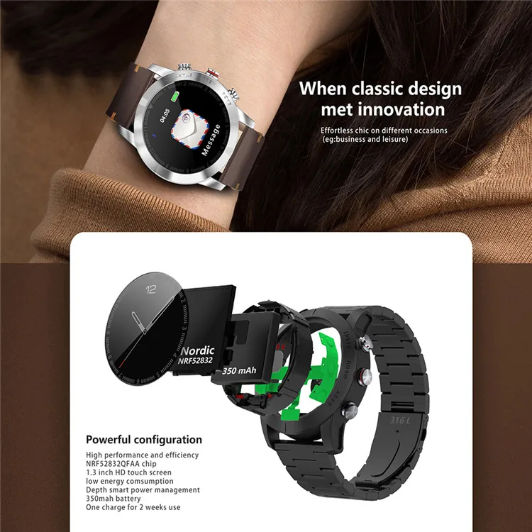 1,3 дюймов TFT 240x240 Разрешение дисплея Монитор сердечного ритма -Функция монитора сердечного ритма HRM даст вам отзывы в реальном времени, сообщите вам о вашем пульсе в любое время и в любом месте Дисплей параметров здоровья -Этот умный браслет может четко отображать время, дату, шаги, расстояние и калории. Немедленно сообщите свои спортивные данные Сидячий и о питании -Когда вы сидите дольше, чем заданный срок, часы будут напоминать вам вибрацией или кольцом, что пришло время для упражнений и питья Напоминание о тревоге -Настройка будильника на телефоне, часы будут напоминать вам вибрацией Потребление калорий -Мастер ваших упражнений и потребления калорий в любое время и в любом месте, мониторинг состояния дождя в любое время Монитор наблюдения за сном -Вам интересно качество вашего сна? Функция монитора сна даст вам ответ Пульт дистанционного управления Камера -Управляйте своим смартфоном, чтобы взять телефоны на запястье Функция "антипотеря -Когда он синхронизируется с вашим телефоном, часы дают сигнал тревоги, когда телефон находится на расстоянии более 10 м от умного браслета WeChat Функция -Если у вас есть новые сообщения в чате, он может быстро уведомить вас, чтобы наслаждаться прикосновением с друзьями Версия Bluetooth: Bluetooth 4,2 Встроенный тип чипа: скандинавский 52832 Ip-рейтинг: IP68 Оперативная Память: 64K Встроенная память: 512K Водонепроницаемый: Да Тип предупредительного сигнала: вибрация Защита от потери: Да Вызов по Bluetooth: ответ, идентификация вызывающего абонента, отклонение ответа на телефон Функция «найти телефон»: Да Группы сигнализации: 5 Трекер для здоровья: напоминание о питании, монитор сердечного ритма, шагомер, напоминание о сидячем положении, монитор сна Обмен сообщениями: Проверка сообщений, напоминание о сообщениях, отправка сообщений Уведомление: Да Другие функции: будильник, Bluetooth, регулировка яркости, калькулятор, календарь, компас, водонепроницаемый, прогноз погоды Тип уведомления: Facebook,QQ,Skype,Twitter,Wechat,WhatsApp Экран: на тонкопленочных транзисторах на тонкоплёночных транзисторах Разрешение экрана: 240x240 Экран Размер: 1,3 дюймов Режим работы: сенсорный экран Емкость аккумулятора: 350 мАч встроенный Люди: женский стол, мужской стол • Материал ремешка: кожа Чехол Материал: Нержавеющая сталь Форма циферблата: круглая Совместимость ОС: Android,IOS Размер посылка (Д x Ш x В): 10,00x8,00x7,00 см/3,94x3,15x2,76 дюймов Посылка Вес: 0,245 кг Вес изделия: 0,216 кг Посылка: умные часы-1 шт., зарядный кабель-1 шт., руководство пользователя на английском и китайском языках-1 шт.