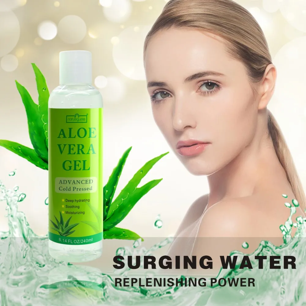 Спецификация: Тип: гель с алоэ Бренд: natureдумаю Вес продукта: 240 мл (+/-5%) Вес посылка: 260 г (+/-5%) Размер посылка: 50 мм * 50*175 мм (допуск меньше thant 2 мм) Типы кожи: вся кожа Срок годности: 3 года Эффект: глубокое увлажнение, успокаивающее, увлажнение Эффективность: Содержит алоэ вера Увлажнение, удержание влаги и восстановление кожи. Свежая и нежирная текстура, легко впитывается. Как использовать: На коже-перед нанесением локации или увлажняющего крема, Аппетитный гель алоэ вера, на желаемой области кожи, чтобы успокоить раздражения и Стимулирует мягкость кожи. На волосах-перед мытьем головы, мягко массируйте гель алоэ вера на кожу головы. Также может использоваться в качестве кондиционера.