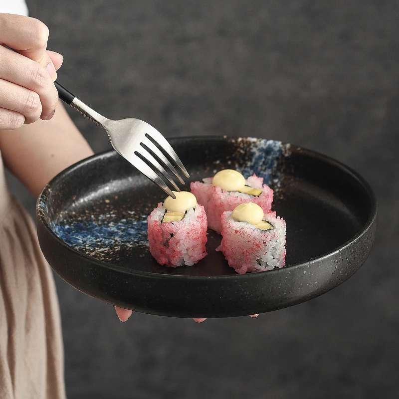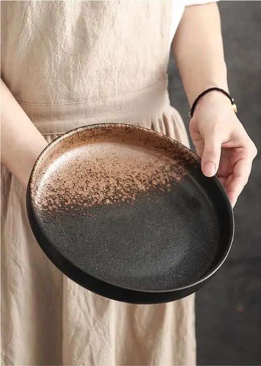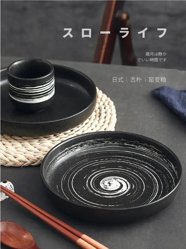 Это керамическая тарелка в японском стиле. Безопасна для использования и легко моется. Подходит для посудомоечной машины.