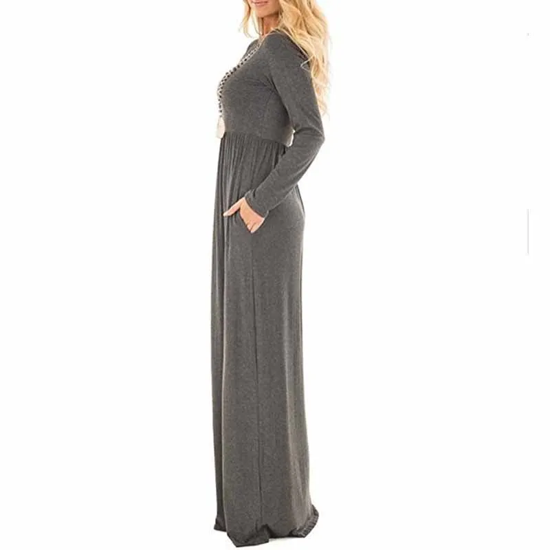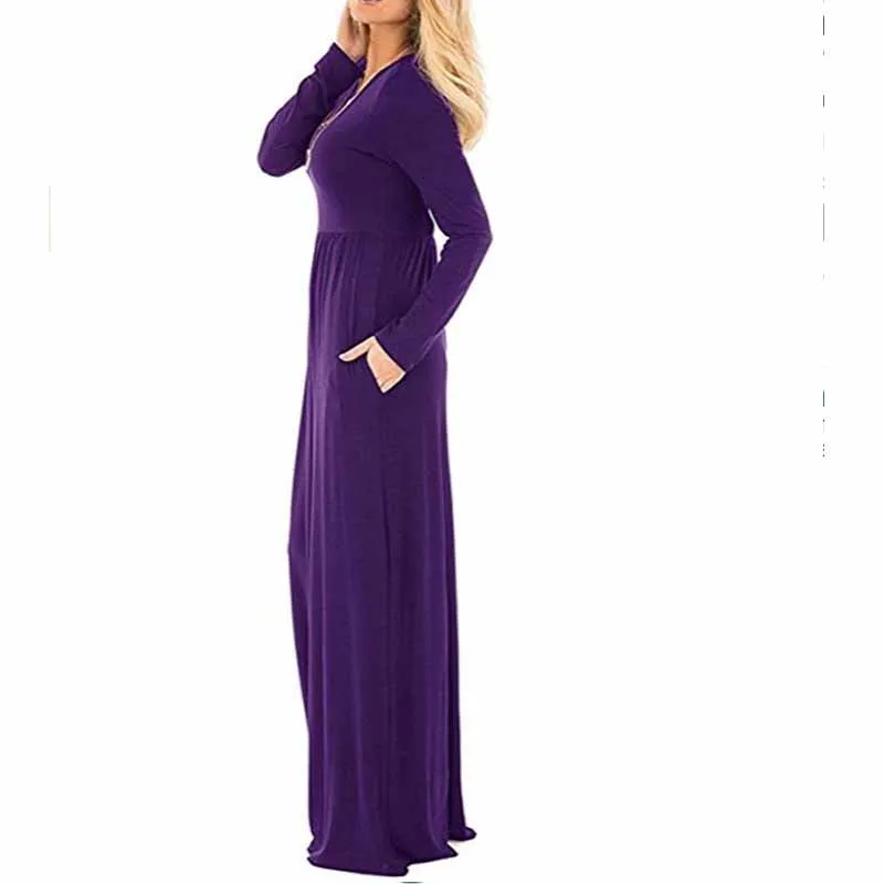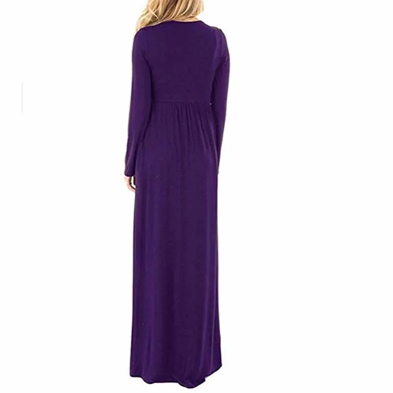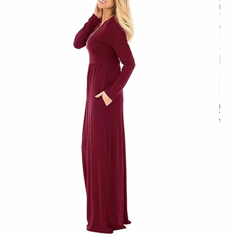 Новое Женское Повседневное платье большого размера, вязаное длинное платье с круглым вырезом, однотонное приталенное платье с длинным рукавом, осенне-зимняя одежда 2020