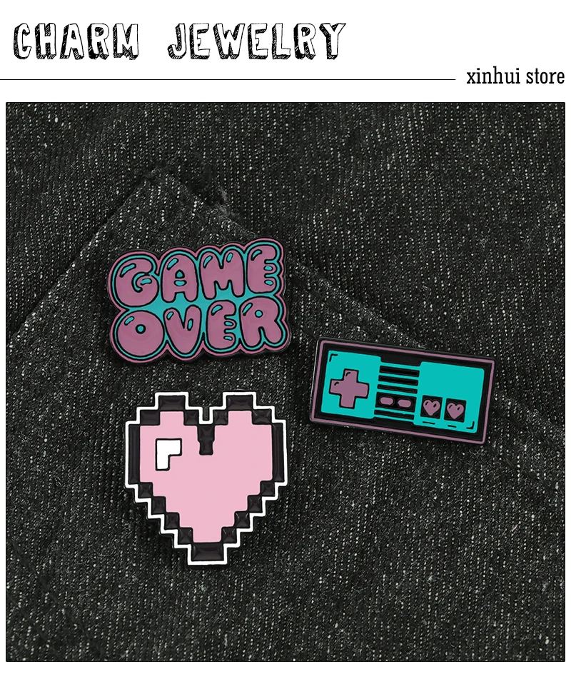 Розовые Мультяшные Броши сердце игра над геймпадом винтажные эмалированные булавки джинсовое пальто рубашка воротник отворот значок ювелирные изделия подарок для женщин