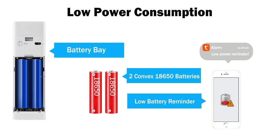 -- Встроенный 2x18650 батареи 2600 мАч/блок * Аккумуляторная батарея. Можно заряжать через USB Кабель * Время работы в режиме ожидания батареи зависит от частоты использования.