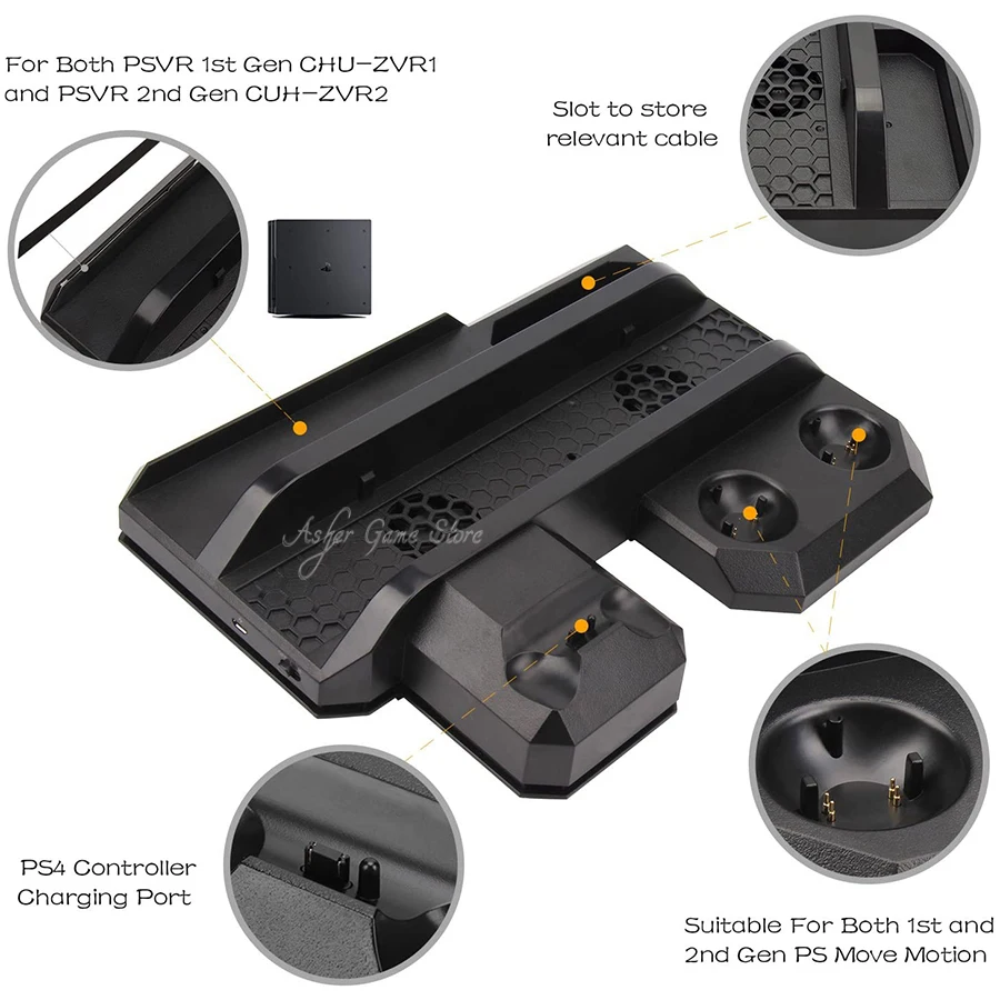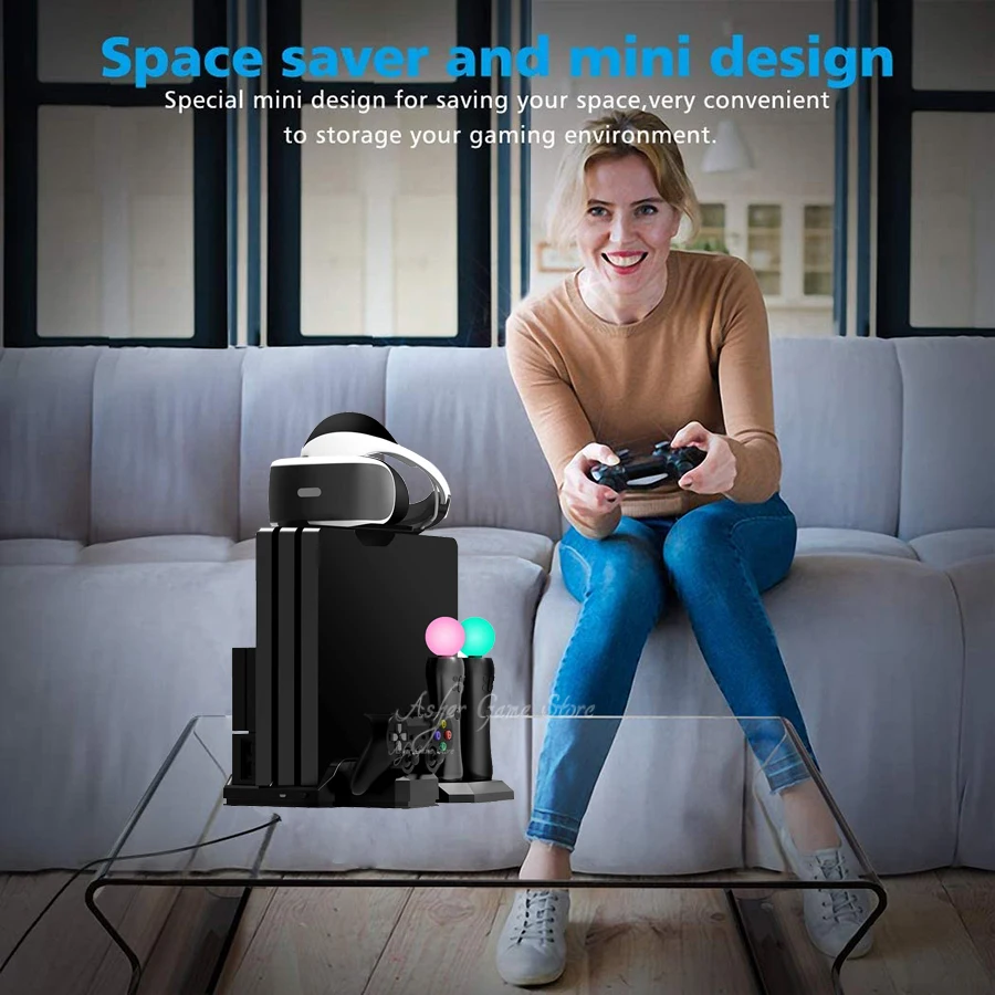 PSVR PS4 Pro ТОНКАЯ вертикальная подставка для зарядки, 3 зарядных док-станции, 2 охлаждающих вентилятора для Sony Playstation 4 PS VR консоли и контроллера