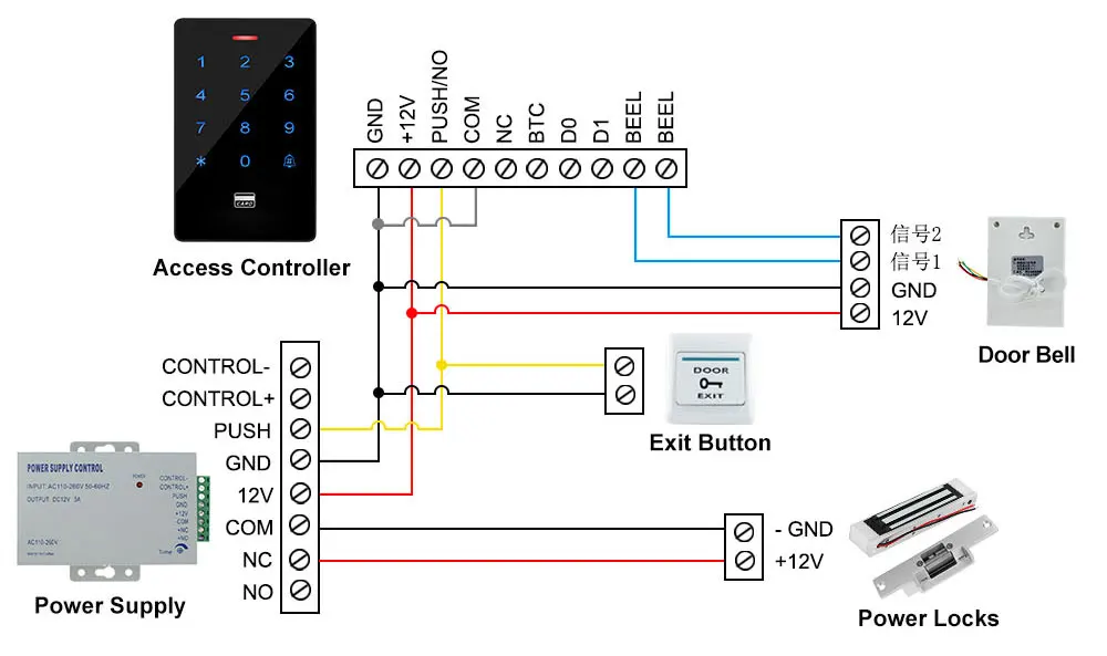 (Примечание: Оба источника питания, замок, кнопка выходаНетВключена в посылка, необходимо приобрести дополнительно)