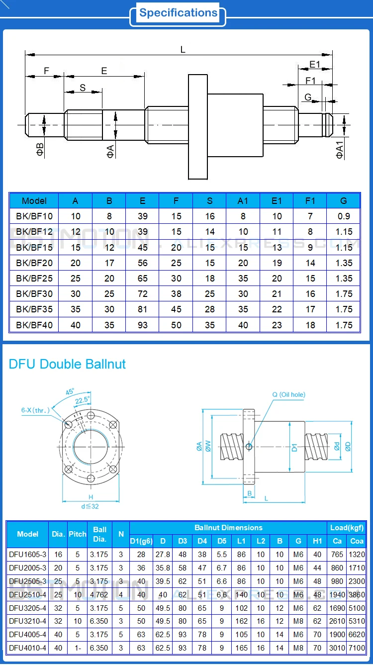 1 Набор шариковых винтов 2510 с двойной шаровой гайкой DFU2510