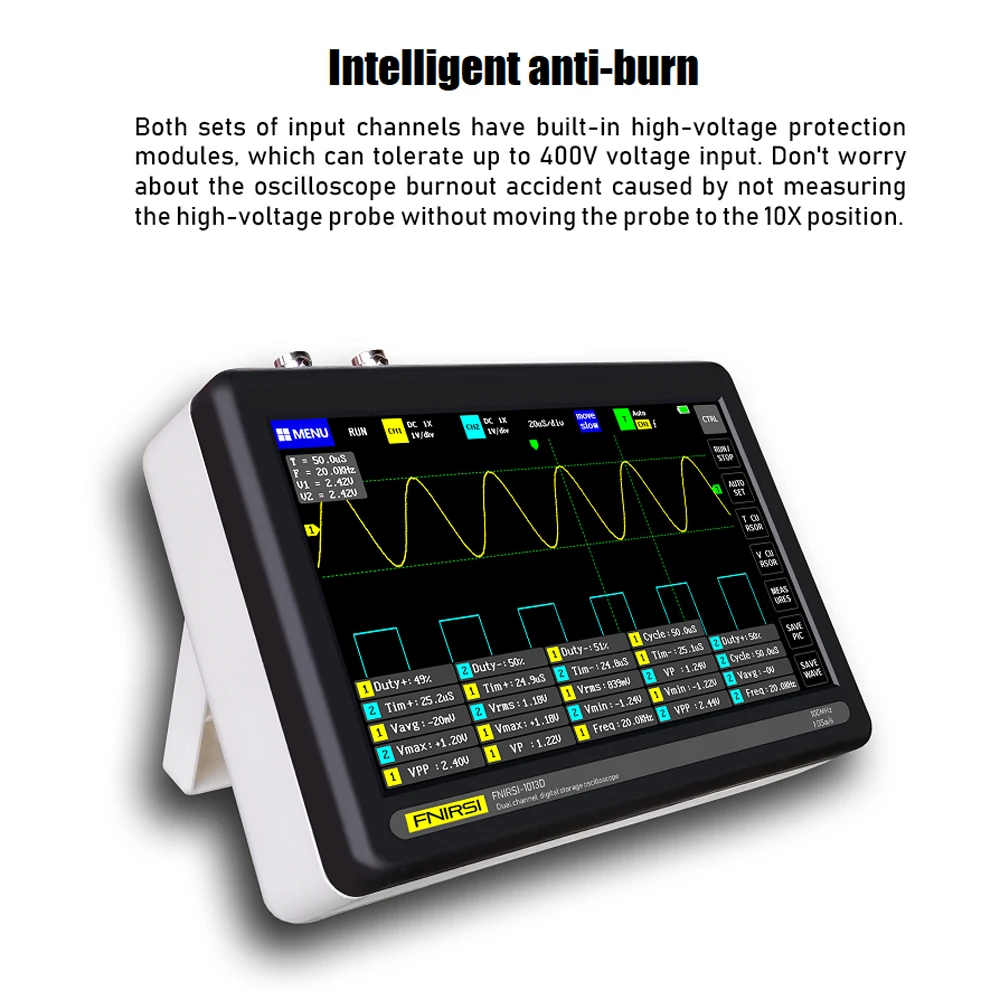 ADS1013D-это полнофункциональный, очень практичный, экономичный двухканальный плоский осциллограф для обслуживания и R & D промышленности.