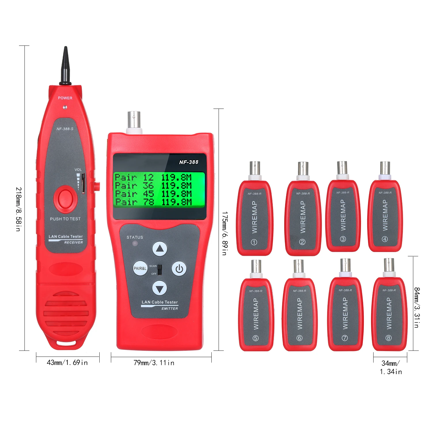 С большим количеством функций, это практический инструмент для проверки кабеля и проверки состоял из тестера, приемника и восьми удаленных идентификаторов. Он имеет три отличные функции охоты на проволоки, сортировки проволоки и тестирования состояния цепи и обеспечивает быстрый и точный результат тестирования. Таким образом, это отличный инструмент тестирования для техников в установке и обслуживании слабой токовой системы, такой как линия связи, Комплексная схема проводки и т. д.