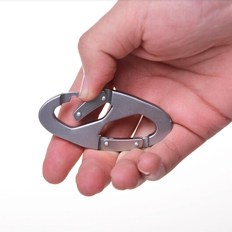 This is a heavy duty aluminum alloy carabiner. And it's very light. It can be used for hiking, hanging tent, hanging equipment, hanging pot, hanging bags, hanging key rings, etc. However, we don't suggest that you use this for mountain-climbing, rock-climbing and other aloft games and sports. You need more professional tools for that.