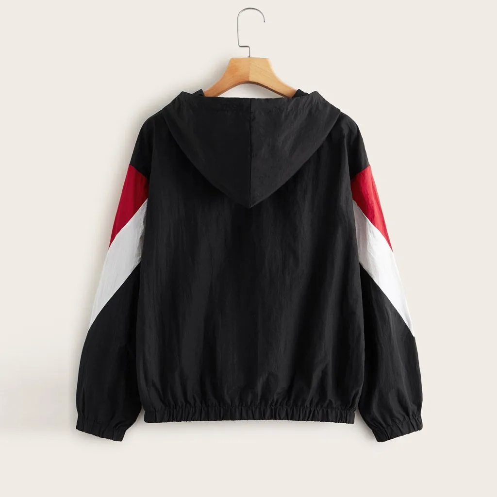 Женская Повседневная ветровка с длинными рукавами и капюшоном, на молнии, с карманами, контрастного цвета, с леопардовым принтом, с длинными рукавами, F04 *