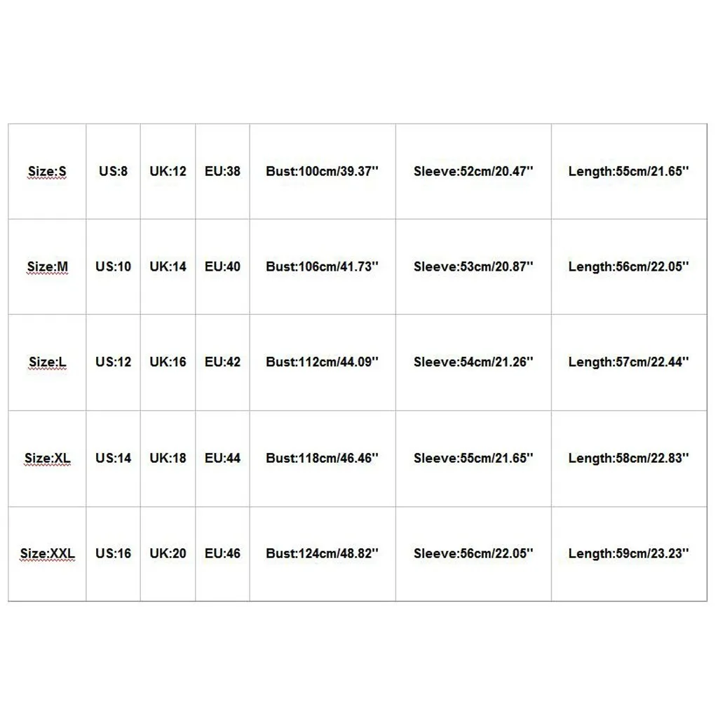 Размеры США Великобритания ЕС Бюст Рукав Длина S 8 12 38 100 см/39,37'' 52 см/20,47'' 55 см/21,65'' М 10 14 40 106 см/41,73'' 53 см/20,87'' 56 см/22,05'' L 12 16 42 112 см/44,09'' 54 см/21,26'' 57 см/22,44'' XL 14 18 44 118 см/46,46'' 55 см/21,65'' 58 см/22,83'' XXL 16 20 46 124 см/48,82'' 56 см/22,05'' 59 см/23,23''