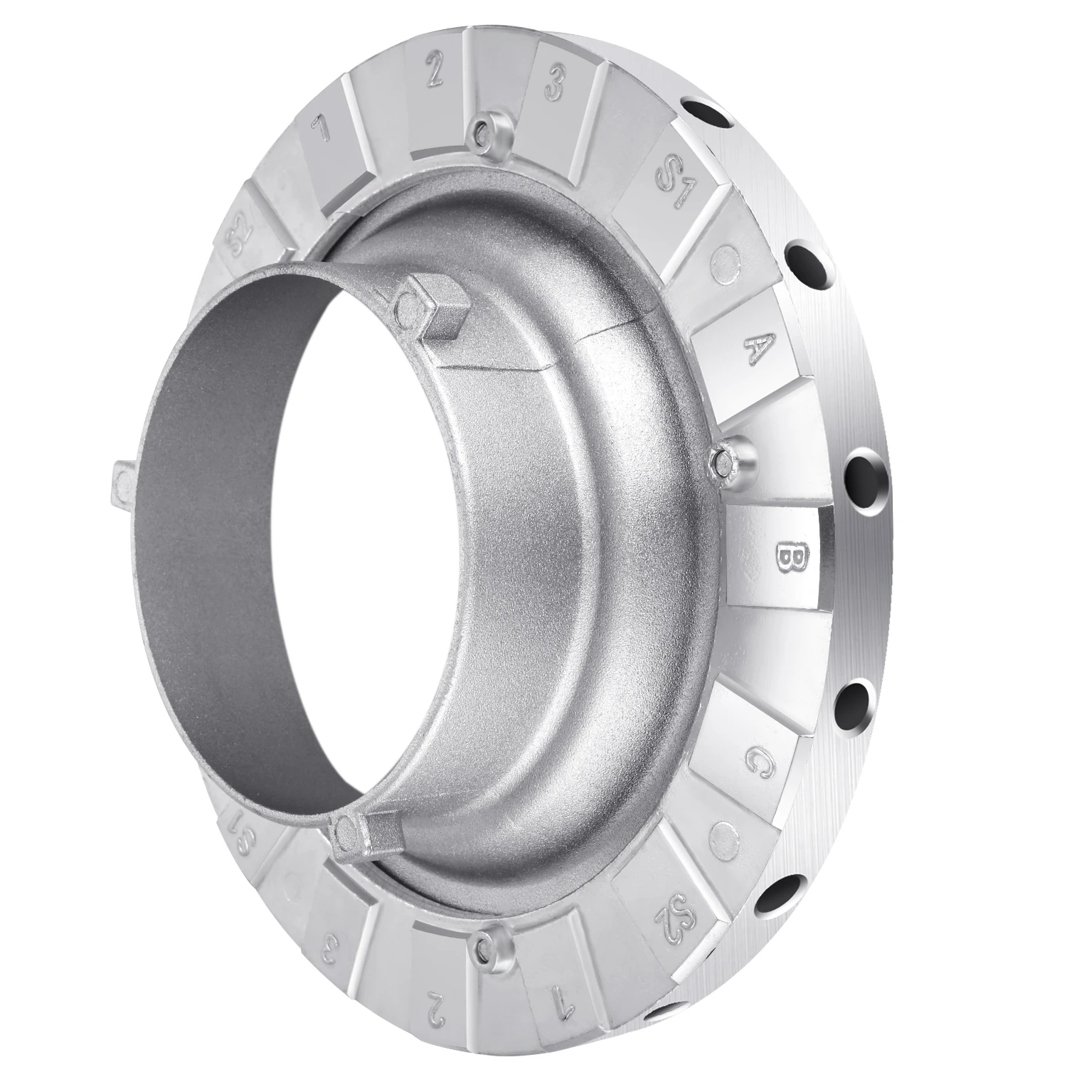 Есть 16 слотов для монтажных стержней для размещения всех размеров и формы софтбоксов, включая квадратные, угловые, полосы, восьмиугольные и шестигранные