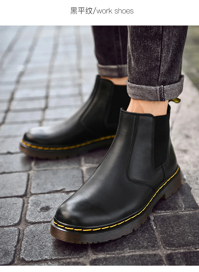 Мужские ботинки «Челси» из натуральной кожи; Модные теплые зимние ботинки с высоким берцем; Ботинки в байкерском стиле; Ботинки унисекс; Размер 44