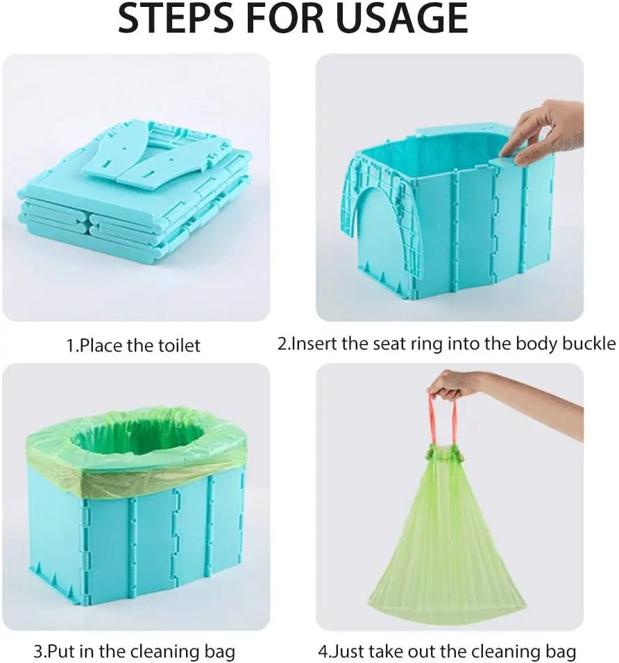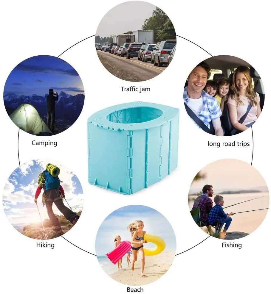 1. Унитаз очень легко складывается и может быть просто упакован вниз очень маленький и плоский для удобного хранения; Очень компактный и легко носить с собой! Это идеальный портативный складной туалет для пробок, кемпинга, путешествий, верховой езды, пеших прогулок, рыбалки, катания на лодках, длительных поездок по дорогам, пляжа, отдыха на открытом воздухе, строительных площадок и т. д. В любом месте в любое время для чрезвычайных ситуаций.