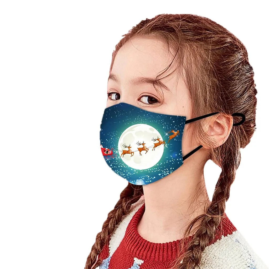 1pc Christmas Fashion Children Washable Floral Printing Adjustable Breathable Masks