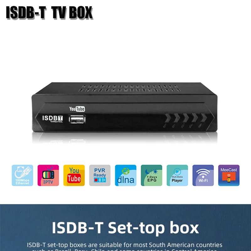 • Поддерживает все ISDB-T трансляции (1, 3, 13 сегментов), MPEG-2/MPEG-4 AVC/H.264 HD/SD видео, Совместимость с DiVX • Используется для любых ISDB-T таких странах, как Бразилия, Перу, Аргентина, Чили, Венесуэла, Филиппины • Поддержка 3D интерфейс "• Оборудован таймером сна "Поддержка teletext/subtitle/muti-language • Мощный и высокоэффективный 7-дневный EPG функция • Автоматическая, 16:9 коробка, 16:9 панорамирование G сканирование, 4:3 коробка Письма, 4:3 панорамирование G сканирование, 4:3 полный, 16:9 широкий экран • USB 2,0 для PVR,TIMESHIFT, обновления программного обеспечения и воспроизведения мультимедийных файлов • Разрешение видеовыхода: 480i/480p/720p/1080i/1080P
