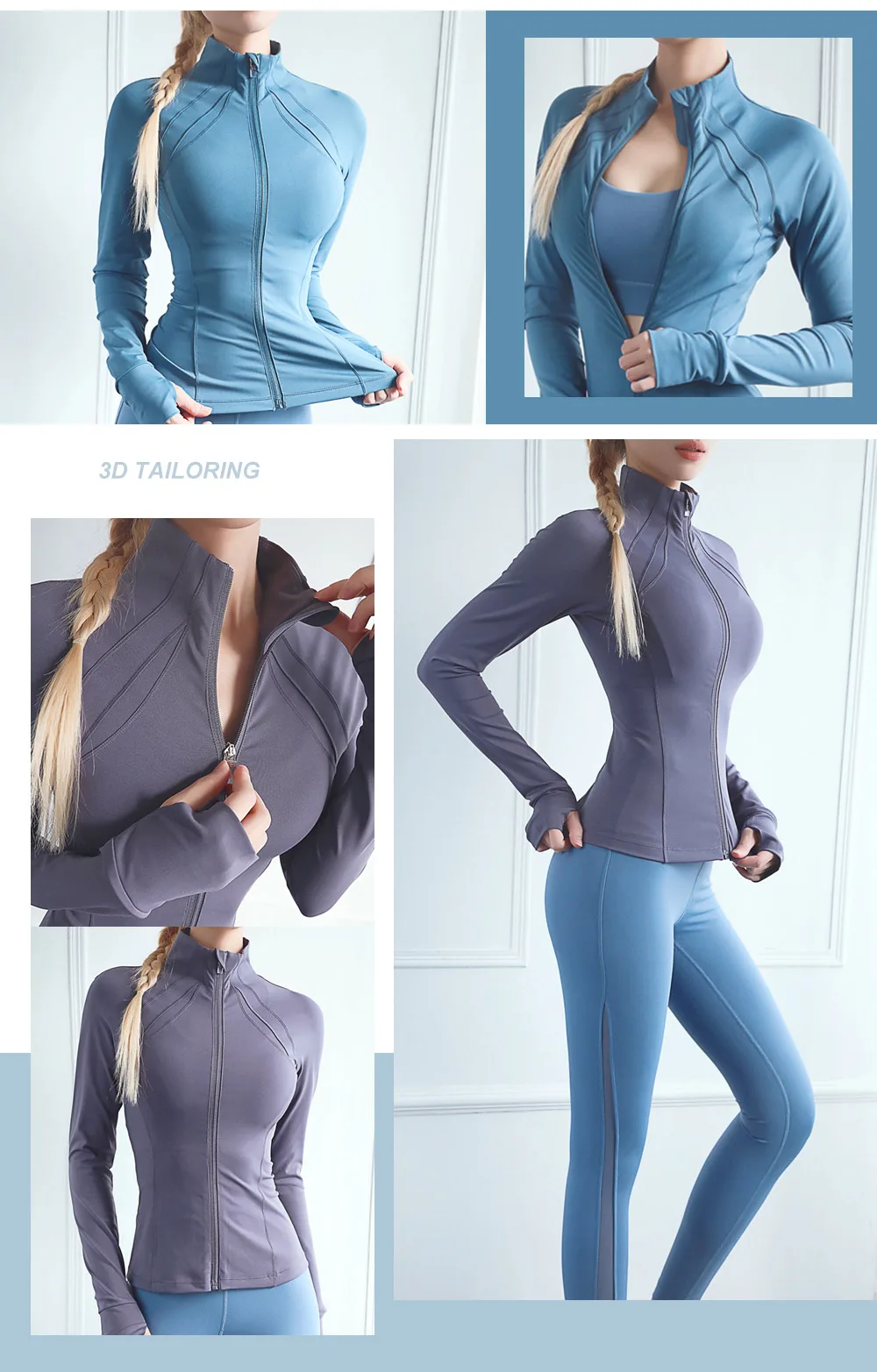 Облегающая спортивная одежда ROEGADYN, Женский комплект, облегающие спортивные куртки для женщин, рубашки для йоги на молнии, зимняя спортивная куртка для бега, тренажерного зала