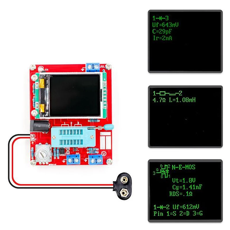 Многофункциональный тестер транзисторов для автоматического обнаружения NPN и PNP транзисторов, FET, диодов, двух диодов, тиристоров, SCR, автоматической идентификации транзисторов. Также может использоваться как квадратный сигнал и генератор сигналов PWM.