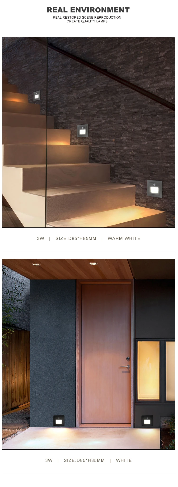 Светодиодный Ночной светильник с датчиком 3 Вт Светодиодный светильник для лестницы встраиваемый ступенчатый светильник s наружный indoorPIR инфракрасный датчик движения настенный светильник лестничный светильник s